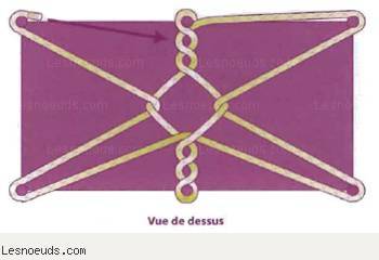 L'attache en losange était utilisée au 19e siècle par les trappeurs et les chercheurs d'or d'Amérique du Nord. Cette attache permet d'assurer les charges sur les bêtes de somme ou sur les véhicules tout-terrain et autres.